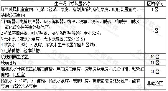 附錄B 煤氣凈化車間主要生產(chǎn)場所爆炸及火災(zāi)危險(xiǎn)區(qū)域等級