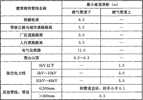 注:1 跨越通航河流的燃氣管道、管橋及管道的標高應符合通航凈空要求;