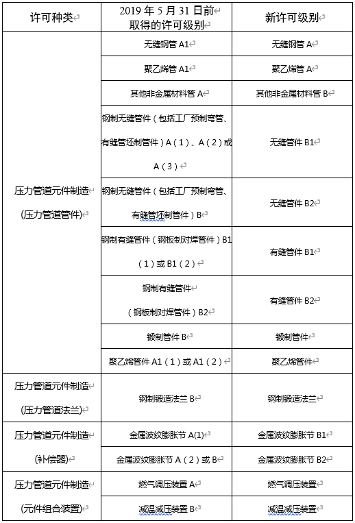 14.進口壓力管道元件許可。根據(jù)前期試點情況,自2022年6月1日起,進口壓力管道管子(A、B)、壓力管道閥門(A1、A2、B)的制造單位應當取得《中華人民共和國特種設備生產(chǎn)許可證》,并按相關安全技術(shù)規(guī)范要求通過型式試驗和制造監(jiān)督檢驗(或者進口安全性能監(jiān)督檢驗),過渡期至2024年5月31日。