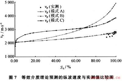 在固結(jié)沉積物實驗中,筆者發(fā)現(xiàn)低飽和度的水合物(飽和度小于10%)對聲速影響不明顯的現(xiàn)象,這種現(xiàn)象也被不同學者所捕捉[19~20]。經(jīng)上述分析后認為,水合物在沉積物孔隙流體中形成,對聲速影響不大,可能是造成這一現(xiàn)象的原因。而當水合物膠結(jié)沉積物顆粒時,其對聲速的影響則可能成倍增長,如在松散沉積物中,微量的水合物(飽和度1%左右)即可使縱波速度增長200~300m/s??梢姡谔烊粴馑衔锏馁Y源評價中,了解水合物的微觀分布同樣具有重要的作用。