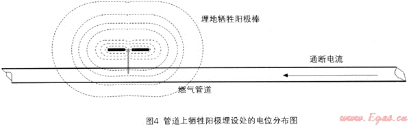 ?、?陽(yáng)極埋設(shè)距離算法:收集管道施工資料,確定犧牲陽(yáng)極埋設(shè)的具體位置或者埋設(shè)距離等,通過(guò)檢測(cè)結(jié)果與施工竣工圖紙記錄數(shù)據(jù)進(jìn)行對(duì)比,確認(rèn)是否為陽(yáng)極干擾。