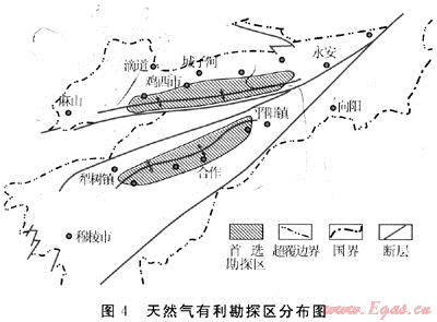 雞西盆地烴源巖為城子河組和穆棱組煤層和泥巖。煤巖顯微組分分析和泥巖地化分析顯示烴源巖以產氣為主,生油能力很差,煤層產氣能力較強,盆地油氣勘探應以天然氣為重點。雞西盆地城子河組和穆棱組砂巖儲層為中 低孔低滲細喉道型。穆棱組中上部泥巖和凝灰?guī)r是區(qū)域的主要蓋層。圈閉有構造圈閉、巖性圈閉和地層圈閉。根據生儲蓋條件分析認為北部坳陷的西雞西到東海深部區(qū)間帶、南部坳陷的穆棱礦到榮華區(qū)間為勘探首選有利區(qū)帶。