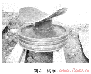 ⑤ 斷管前為確保封堵嚴密,通常在主管來氣方向用黃油與滑石粉混合物砌筑“墻體”,本工程封堵效果十分理想,因此不再采取砌筑“墻體”的方式,以防止其對下游調(diào)壓設(shè)施的損壞。