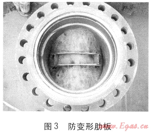 ④ 為了減少鞍形塊可能出現(xiàn)的變形,減少鞍形塊的修剪量,開孔前在管道上焊一個防變形肋板(見圖3);