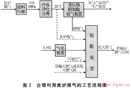 許多城市的煉焦企業(yè)都附屬在鋼鐵企業(yè)內(nèi),而且鄰近城市天然氣管網(wǎng)。如果煉焦企業(yè)、氫氣產(chǎn)品用戶與燃?xì)馄髽I(yè)能夠攜手聯(lián)合,三位一體,充分利用城市天然氣管網(wǎng)容量大的獨(dú)特優(yōu)勢,將焦?fàn)t煤氣制氫過程中的所有解析氣乃至整個煉焦(鋼鐵)企業(yè)所有可燃?xì)怏w調(diào)制成合格的代天然氣產(chǎn)品供應(yīng)管網(wǎng),那么,就可以達(dá)到焦?fàn)t煤氣各組分各盡其用、合作方共贏的目的。