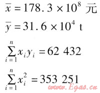根據(jù)上述一元回歸模型,計算出相關(guān)參數(shù):