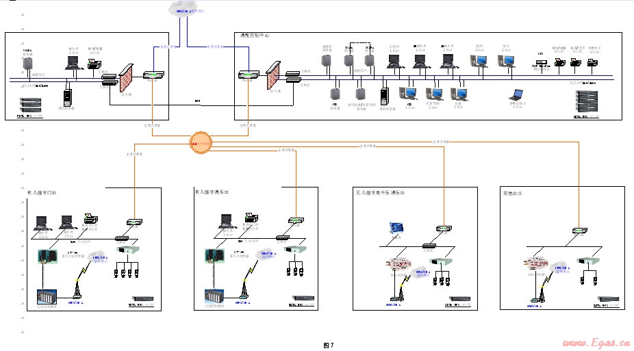 廣域網(wǎng)通信:對(duì)于SCADA系統(tǒng)的廣域網(wǎng)通信,從中心調(diào)度層到各站控系統(tǒng)的廣域網(wǎng)連接,通過廣域網(wǎng)路由器和租用專業(yè)通信公司的信道,以光纖或無線GPRS/CDMA方式,實(shí)現(xiàn)遠(yuǎn)程數(shù)據(jù)的傳遞和交換。通信協(xié)議采用MODBUS、DNP3等通信協(xié)議