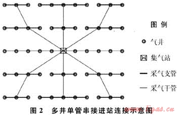 此種串接方式優(yōu)化了管網(wǎng)布置,縮短了采氣管線長(zhǎng)度,增加了集氣站轄井?dāng)?shù)量,降低了管網(wǎng)投資,減少了對(duì)生態(tài)環(huán)境的破壞,適應(yīng)低壓、低產(chǎn)的煤層氣田大規(guī)模開(kāi)發(fā)。