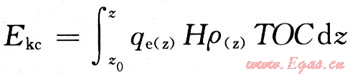 式中:Ekc為排烴強度,104t/km2;Z為埋深,m;Z0為排烴門限,m;qe(z)為單位質(zhì)量有機碳的排烴率,mg/g;ρ(z)為烴源巖密度,g/cm3;TOC為有機碳百分含量,%;H為烴源巖厚度,m。