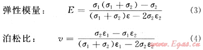 式中:E為彈性模量;v為泊松比;σ1、σ2、σ3為三軸壓力,其中σ1表示垂向壓力,實驗中指軸壓,σ2、σ3表示水平壓力,實驗中指圍壓,在假三軸力學實驗中,;σ2=σ3;ε1為垂向應變,實驗指軸向應變;ε2橫向應變,實驗指平均徑向應變。