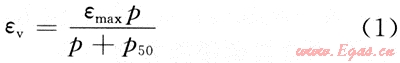 式中:εv為壓力p下吸附的體積應變;εmax與朗格繆爾方程中朗格繆爾體積數(shù)據(jù)表達的含義相當,代表理論最大應變量,即無限壓力下的漸近值;p50與朗格繆爾壓力數(shù)據(jù)表達的含義相當,代表煤樣達到最大應變量的1/2時的壓力。