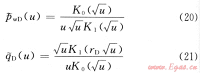 在定產(chǎn)量和定壓力兩種情況下,通過Laplace變換可分別求得生產(chǎn)井的壓力和產(chǎn)量為: