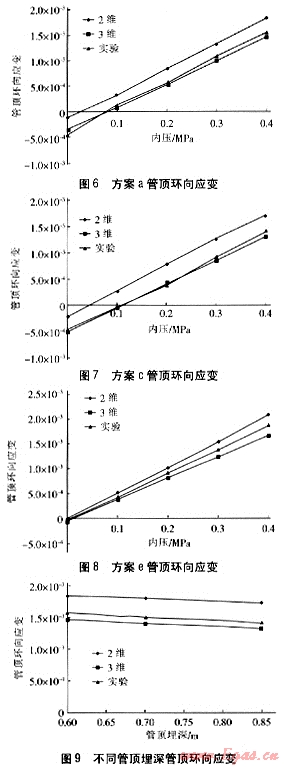 ② 有限元分析對埋地燃?xì)夤艿赖挠?jì)算結(jié)果(特別是3維模型)與實(shí)驗(yàn)分析結(jié)果基本吻合。