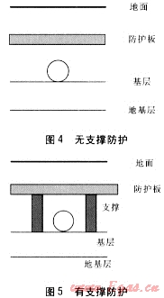 城市地下管網(wǎng)復(fù)雜,各類管道縱橫交錯。有些場所進(jìn)行燃?xì)夤艿婪笤O(shè)時由于各種原因無法滿足規(guī)定的埋設(shè)深度要求[1]。因此,《城鎮(zhèn)燃?xì)庠O(shè)計(jì)規(guī)范》GB 50028—2006第6.3.4條中注明“當(dāng)不能滿足上述規(guī)定時,應(yīng)采取有效的安全防護(hù)措施[2]。”在實(shí)際燃?xì)夤艿朗┕ぶ幸话愀鶕?jù)經(jīng)驗(yàn)采取相應(yīng)的淺埋保護(hù)措施,至于效果如何,是否達(dá)到要求,不是很清楚。本文建立有限元分析模型,對在采取防護(hù)措施情況下的埋地燃?xì)夤艿朗芰η闆r進(jìn)行分析,并結(jié)合實(shí)驗(yàn)分析,驗(yàn)證模型的可靠性,以指導(dǎo)實(shí)際工程。