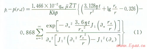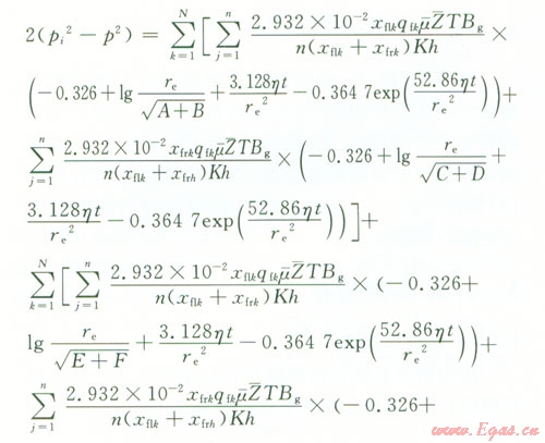 因為流體在水平井筒內(nèi)的壓力損失比基質(zhì)中的小,所以可以近似的認(rèn)為裂縫底部的壓力就等于水平井筒內(nèi)的壓力。結(jié)合上述公式,可得氣體從地層到井筒整個流動過程的滲流方程,即