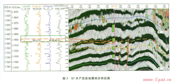 X7井油氣產(chǎn)層段(井深3 465~3