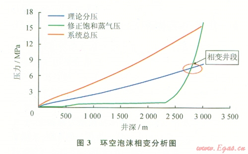 1)在鉆進(jìn)過程中,如果泡沫流體相態(tài)發(fā)生變化,其密度等參數(shù)將發(fā)生變化,直接影響井底壓力的推算,并且導(dǎo)致井筒流體流態(tài)及工況參數(shù)改變,可能導(dǎo)致井下復(fù)雜情況的出現(xiàn)。
