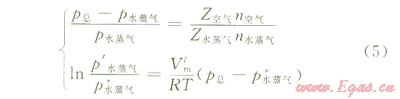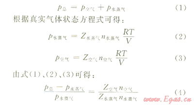 對(duì)于空氣和水蒸氣組成的混合氣體,可以采用分壓定律來研究。由分壓定律可知,混合氣體形成的總壓等于空氣的分壓與水蒸氣的分壓之和,而各組分的分壓等于各組分所占的摩爾質(zhì)量分?jǐn)?shù)與該系統(tǒng)中氣相的總壓的乘積。