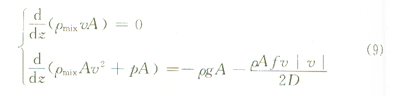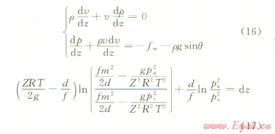2)環(huán)空中氣體流動(dòng)方程組。穩(wěn)定流動(dòng)方程: