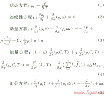 2)蜂窩陶瓷擁有較大的比表面積,氣體和固體間的對(duì)流換熱系數(shù)足夠大,氣體和固體間存在著局部熱平衡,即在任一處它們的溫度相等(單溫度模型)。