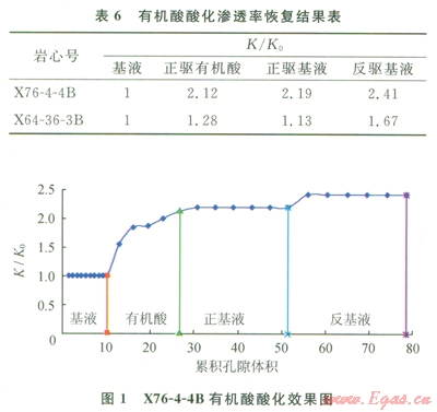 可以看出,采用用有機酸酸化后,巖樣的滲透率有了明顯的提高。說明酸液配方的選擇對酸敏實驗結(jié)果可產(chǎn)生“質(zhì)變”的影響[9-11]。