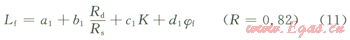 就低角度裂縫而言,不妨用裂縫的徑向延長深度(Lf)來近似代替鉆井液侵入深度(Id)。對塔中多口井的15個樣本井段儲層參數(shù)(深淺電阻率的比值、儲層滲透率、裂縫孔隙度和裂縫的徑向延伸長度等參數(shù)值)進行數(shù)理統(tǒng)計分析發(fā)現(xiàn),裂縫的徑向延伸長度與這些單相關關系很差。同時也進一步說明,裂縫的徑向延伸長度受深淺電阻率比值、裂縫孔隙度等多種因素的控制,即: