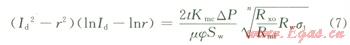 不難看出式(6)已經(jīng)消除了可變膠結指數(shù)的影響,進一步證明了“當其他條件不變時,鉆井液濾液侵入地層的深度主要受泥餅滲透率和地層的孔滲特性兩方面因素的控制,這點與非裂縫性砂泥巖地層比較類似”的觀點是經(jīng)得起推敲的。再將式(6)帶入式(3)可以得到: