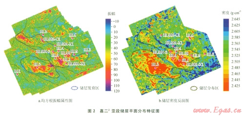 根據(jù)儲(chǔ)層地震、測(cè)井響應(yīng)特征,對(duì)嘉二段非均質(zhì)儲(chǔ)層采用地震反射特征分析、屬性分析和地震反演,精細(xì)刻畫了嘉二段非均質(zhì)儲(chǔ)層在平面的分布特征[4-8]。