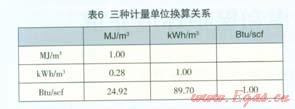 國際上常用的計量體積單位有m3、scf等;計量溫度單位有℃、℉、K等;計量壓力單位有psi、Pa、bar、Atm等;計量能量單位有J、kWh、Btu、kcaI等[4]。各單位之問的換算關(guān)系如表5所示。