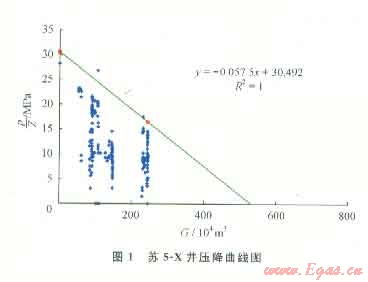 根據(jù)如上關(guān)系,可通過繪制氣藏彈性二相法壓力降落曲線并結(jié)合氣藏儲層巖石和流體的綜合壓縮系數(shù)、地層壓力、產(chǎn)量等參數(shù),計算彈性二相法儲量。適用條件:壓降和產(chǎn)量相對穩(wěn)定,上下波動不得超過5%。