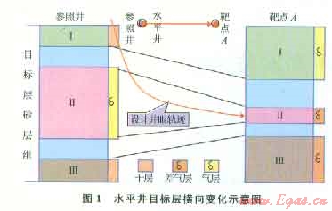 蘇里格氣田儲層非均質(zhì)性強,作為水平井目標(biāo)層大多由多套含氣單砂體所組成,它們之間或由泥質(zhì)薄夾層所分隔,或由儲層物性變化所形成的致密夾層所隔離,時常遇見靶點A處目標(biāo)砂層組與參照井不一樣的特殊情況,即同一單砂體厚度變薄或增厚,含氣性變差或變好,泥質(zhì)夾層變厚或減薄等。而設(shè)計一般都選擇參照井厚度大、含氣性好的單砂體作為人靶位置。如果遇見入靶點位置目標(biāo)層發(fā)生較大變化,不進(jìn)行調(diào)整仍按原設(shè)計靶點入靶,則存在原目標(biāo)砂體相變或尖滅風(fēng)險(圖1),如何保證水平井人靶是優(yōu)化的內(nèi)容之一。