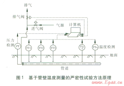 如上所述,采用現(xiàn)有的嚴密性試驗方法無法準確判斷燃氣管道的嚴密性情況,因此本文提出一種基于管壁溫度測量的嚴密性試驗方法。該方法原理見圖l,具有下列特點: