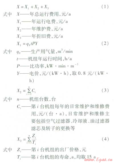 ①合理選擇空氣壓縮機(jī)的配置方案可以在滿足生產(chǎn)工藝要求的基礎(chǔ)上降低年總運(yùn)行費(fèi)用,提高工業(yè)生產(chǎn)的經(jīng)濟(jì)性。