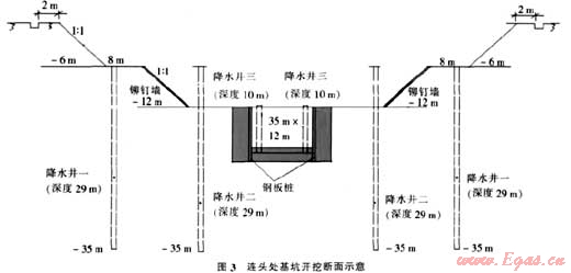摘 要:中國(guó)石油天然氣管道局第一工程分公司在西氣東輸二線17標(biāo)段渭河定向鉆連續(xù)雙向?qū)Υ┻B頭作業(yè)坑開挖施工中,采用了基坑支護(hù)方法施工,基坑-12.0m以上采用退臺(tái)放坡結(jié)合土釘墻方案;-12.0m以下采用鋼板樁加鋼管內(nèi)支撐方案,坑底采用水泥土旋噴樁封底,并在坑內(nèi)坑外均設(shè)置降水井。文章介紹了施工作業(yè)流程和關(guān)鍵環(huán)節(jié)的施工措施。渭河穿越連頭基坑采用井點(diǎn)降水、基坑分層開挖、基坑支護(hù)、旋噴樁止水等措施,解決了在河道內(nèi)開挖19m深坑連頭存在的諸多施工和社會(huì)問(wèn)題,這種工藝具有明顯的安全、節(jié)約、環(huán)保優(yōu)勢(shì),攻克了大型河流定向鉆多次對(duì)穿中間連頭的施工難題,為以后類似工程積累了施工經(jīng)驗(yàn)。