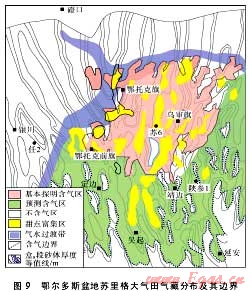 所謂大型化成藏分布的近源性,是指中低豐度油氣藏主要分布于有效烴源灶范圍內或與烴源灶緊密關聯(lián)的范圍內,成藏分布具明顯的源控性。有兩方面含義:①與烴源灶共生,中低豐度油氣藏群大型化成藏的基本條件是烴源灶和儲集體不僅規(guī)模大,而且兩者必須緊密接觸。②烴源灶與儲集體間存在較大的壓力差或烴類濃度差,以保證油氣有效成藏和大規(guī)模成藏。近期通過對鄂爾多斯、四川、松遼、吐哈和準噶爾等盆地已發(fā)現(xiàn)中低豐度油氣藏解剖研究,發(fā)現(xiàn)這類油氣藏分布于烴源灶范圍內的比例高達90%以上。由于成藏分布的近源性,中低豐度氣藏群分布具有明顯的地域性,主要分布于坳陷湖盆的向斜區(qū)和廣大斜坡區(qū)、克拉通盆地古隆起的圍斜部位與前陸盆地緩翼斜坡區(qū)。