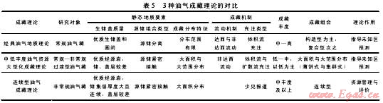 4.2 大型化成藏理論認識與其他兩種油氣成藏理論的差異