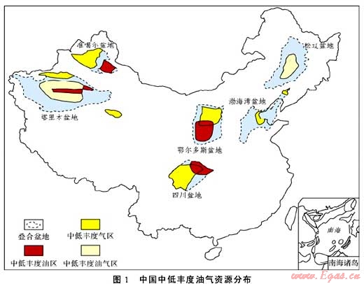 關鍵詞:中低豐度油氣資源;大型化成藏;條件;分布特征;勘探領域;疊合盆地;坳陷盆地;中國陸上