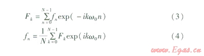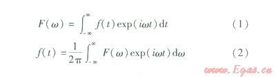 式中,F(ω)稱為f(t)的傅里葉積分,又稱為f(t)的傅里葉變換,f(t)稱為F(ω)的逆變換;t為時(shí)域變量,ω為頻域變量;i2=-1。