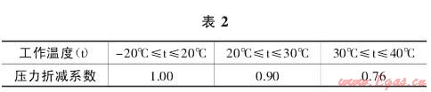 1.2.3 聚乙烯燃?xì)夤艿赖墓ぷ鳒囟瘸^20℃時(shí),還需要考慮管道燃?xì)馍邔?duì)于其自身承受能力的影響,也就是說,溫度的勝過對(duì)造成其允許的最大工作壓力值受到影響而降低,具體的降低系數(shù)如表2。
