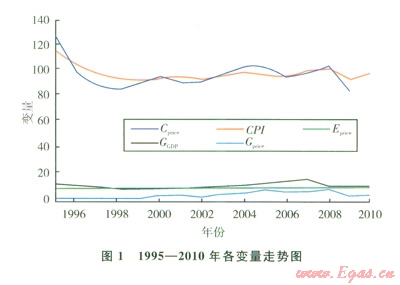 筆者的數(shù)據(jù)來源于l995-2010年《中國統(tǒng)計(jì)年鑒》、國家統(tǒng)計(jì)局網(wǎng)站、相關(guān)文獻(xiàn)等,其中2010年化學(xué)工業(yè)品出廠價(jià)格指數(shù)尚無法查閱。