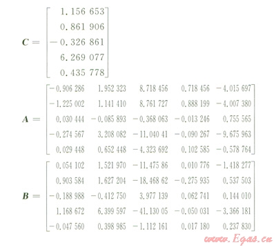 其中CA,B分別為常數(shù)矩陣和兩個(gè)系數(shù)矩陣。