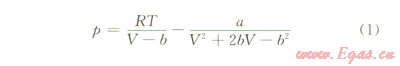 式中p為體系壓力,Pa;V為摩爾體積, m3;T為絕對(duì)溫度,K;R為氣體常數(shù),無量綱;a、b可表示為:
