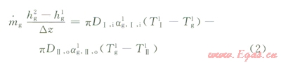 式中下標mg代表該段的NG氣體,wall代表管壁,o代表管外側,i表示管內側,其余同上。
