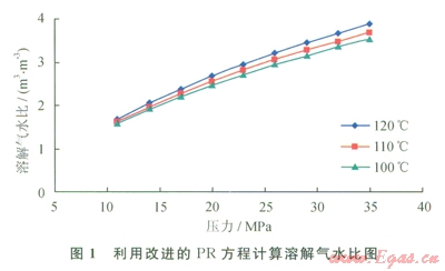 利用改進(jìn)的PR方程結(jié)合相平衡模型計算不同溫度、壓力條件下的溶解氣水比(圖1)。