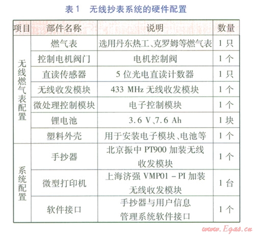 無線抄表系統的硬件配置包括無線燃氣表配置和系統配置兩個方面,所包括的部件見表l。