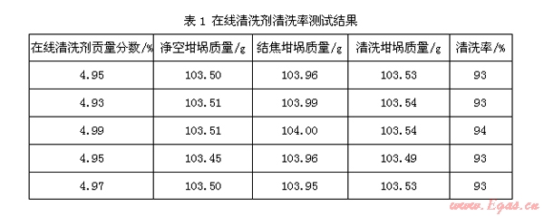 我們進行了在線清洗劑清洗率測試,測試結果見表1。由表1可知,在線清洗劑的清洗率可達93%以上,說明清洗效果理想。