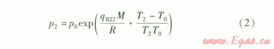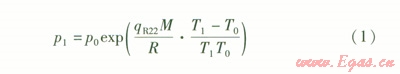 熱泵循環(huán)過程工質(zhì)壓力與熱泵蒸發(fā)溫度和冷凝溫度有關。選R22為熱泵的工質(zhì),假定工質(zhì)為等溫狀態(tài)下進行冷凝與蒸發(fā),壓縮機進口工質(zhì)壓力為: