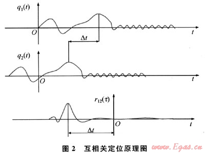 通過求相關(guān)函數(shù)r12(r)的極大值和極大值對應(yīng)的τ0,即可進行泄漏檢測和定位。互相關(guān)定位原理圖如圖2所示。