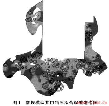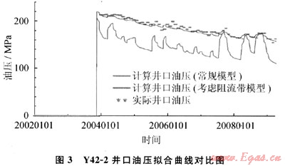 歷史擬合是對地質(zhì)模型參數(shù)場的修正,也是對地質(zhì)再認(rèn)識的過程。常規(guī)模型歷史擬合調(diào)參前井口油壓擬合較好的井有24口,占所有氣井的比例為18.2%,且多數(shù)井模型計算壓力較實際壓力偏高;考慮阻流帶的模型壓力擬合較好的井約有72口,所占比例達(dá)到54.5%,多數(shù)井計算壓力與實際壓力更加接近,空間擬合誤差對比圖見圖1、2。此外,阻流帶的引入還克服了歷史擬合參數(shù)調(diào)整有時范圍較大、不合理的弊端。Y42-2井試井解釋滲透率為0.4mD,表皮系數(shù)為-5.8,邊界面積1.71km2。常規(guī)模型需要將滲透率減小,油壓才能基本擬合上,且曲線變化趨勢仍然與實際存在較大偏差,顯然這種修改是不符合實際的。引入阻流帶以后,將滲透率減小為原來的50%,油壓迅速擬合到實際水平,壓力變化趨勢與實際相符(圖3),這也從另一方面證實了阻流帶的存在。由此可見,考慮阻流帶之后歷史擬合工作變得更加容易,部分井甚至不需要調(diào)參即可完成擬合,進(jìn)一步證實了阻流帶模型的可靠性。值得注意的是:并不是所以井之間都存在阻流帶,還應(yīng)結(jié)合井間干擾分析成果,對部分井間連通區(qū)域進(jìn)行修改。通過反復(fù)修改參數(shù)場,對每口井進(jìn)行了壓力和產(chǎn)水的擬合,得到模型最終計算儲量710.9×108m3,與地質(zhì)儲量719.21×108m3相差不大,誤差在5%以內(nèi),認(rèn)為修正后的模型能夠基本代表氣藏實際[8]。