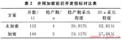 在完成歷史擬合的基礎(chǔ)上,對考慮阻流帶的模型進(jìn)行了計算,得到了更加準(zhǔn)確的氣藏剩余氣分布,Eclipse軟件能夠定量顯示每個網(wǎng)格單元剩余天然氣的地質(zhì)儲量。以此為基礎(chǔ),尋找儲量動用程度低的“甜點”進(jìn)行局部加密。設(shè)計14口加密井,方案預(yù)測指標(biāo)見表2。從表2中可以看出:井網(wǎng)加密后,儲量動用程度提高,氣田采收率增加了4.41%。